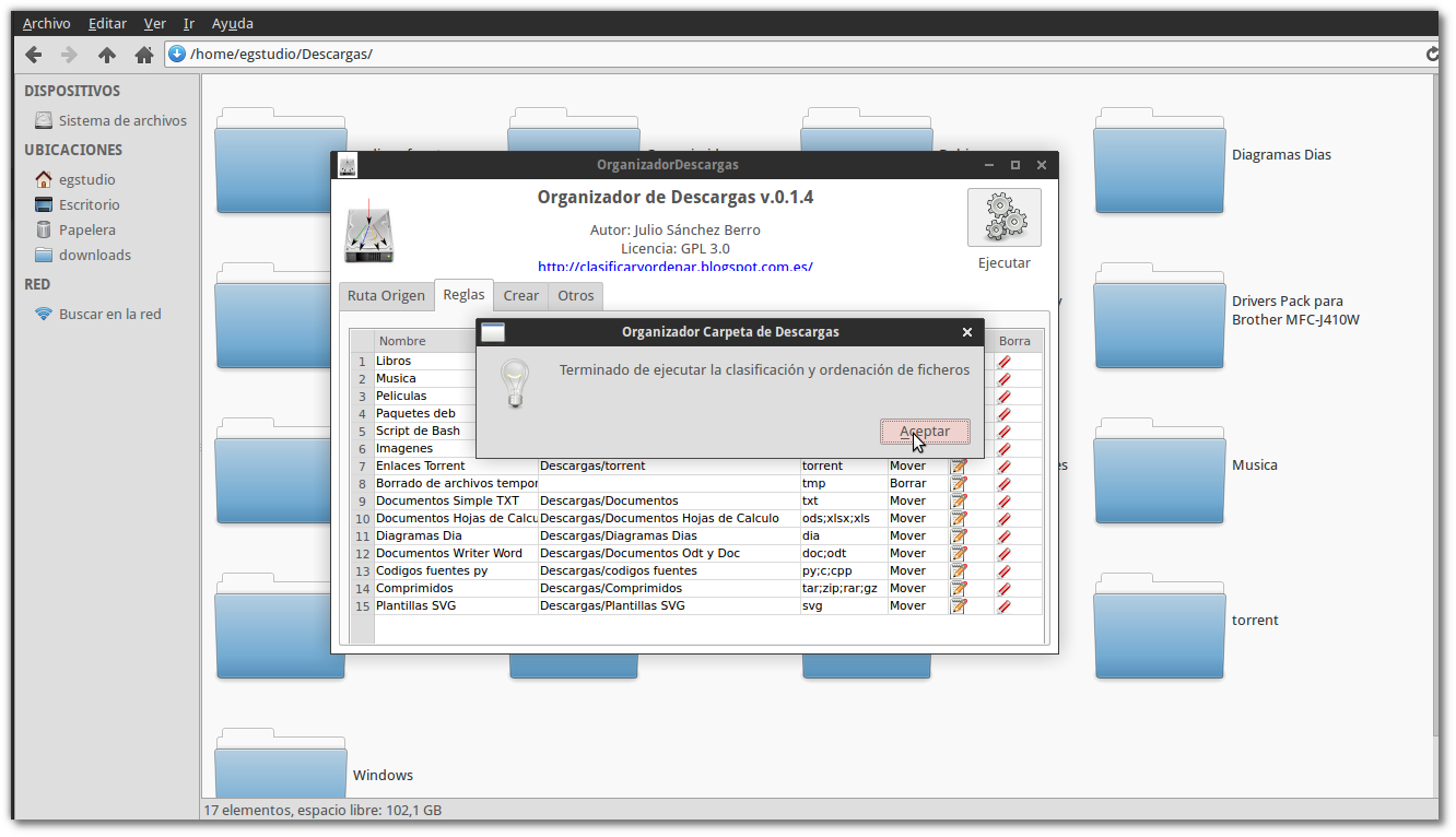 Pero calma,padawan del pingüino tux y asociados,por suerte,un programador español llamado Don Julio Sanchez,se vio en la necesidad de crear un programa bastante util a la hora de organizar miles y miles de archivos...su nombre:Clasificador y Organizador de archivos.(Gracias al Dios de las Patadas Giratorias que no lo puso en japones,me cagan los titulos japoneses largos)...